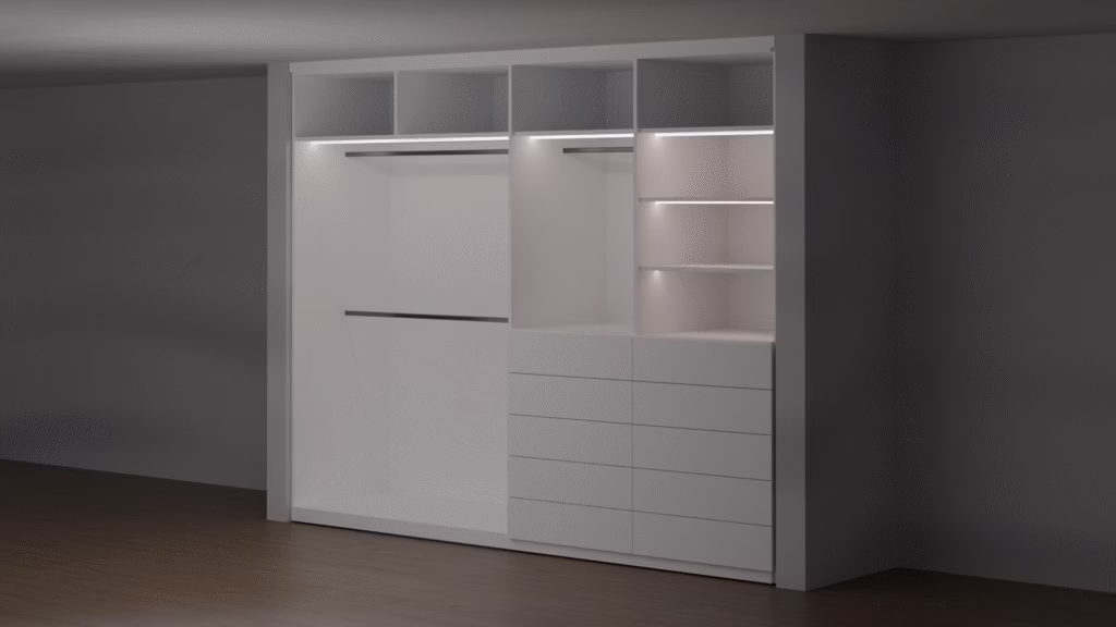 Diseño de lujo con un toque de modernidad en la habitación principal, funcionalidad y organización inteligente con materiales, acabados y herrajes de alta gama.